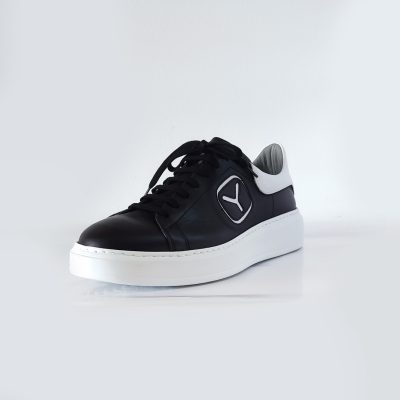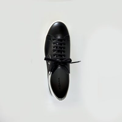 Ανατομικά δερμάτινα παπούτσια σε μαύρο χρώμα με λευκή λεπτομέρεια!